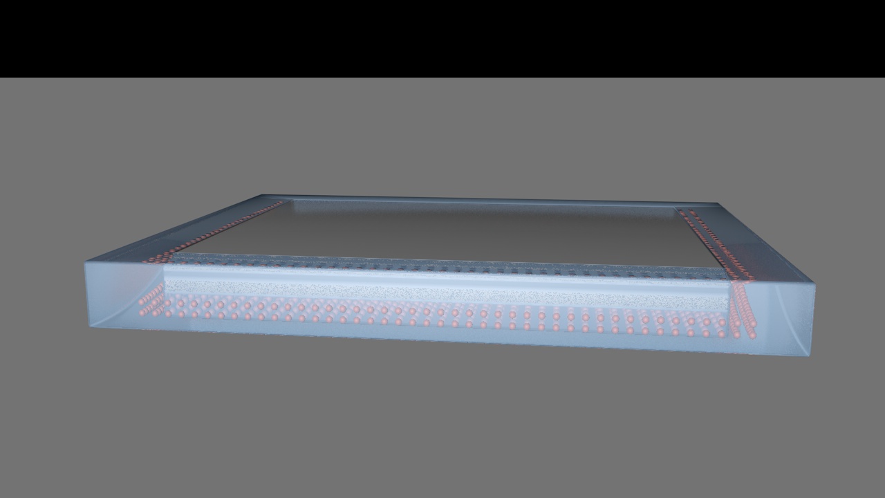 8、对键合后暴露于蓝光芯粒、绿光芯粒与红光芯粒以外的键合介质进行减薄处理使初始厚度减薄至目标厚度,以使键合介质的厚度等于封装区的深度,得到RGB显示模组。